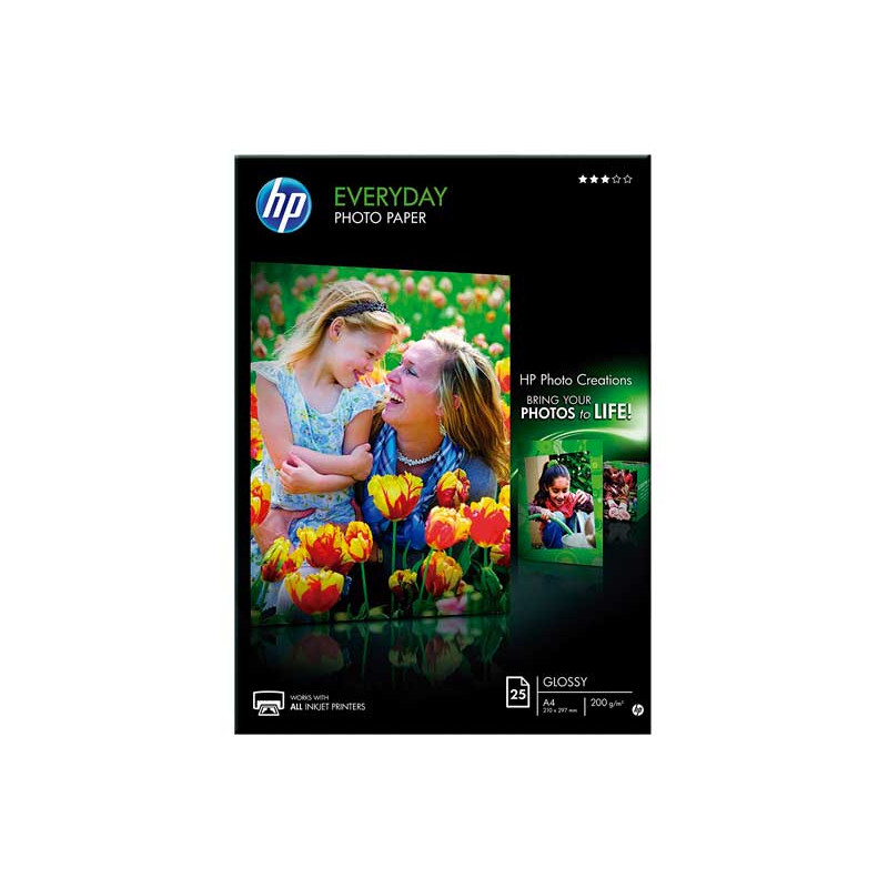 Satinado para uso diario 200g. Tamaño A4. Es perfecto para imprimir fotografías del correo electrónico e internet, pruebas fotográficas, tarjetas de felicitación y trabajos escolares.